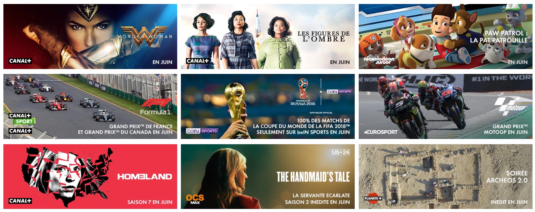 Avec les chaînes exclusives CANAL+, CANAL+Sport, beIN SPORTS, Eurosport, Foot+, Rugby+, Golf+, Infosport+, AppleTV.