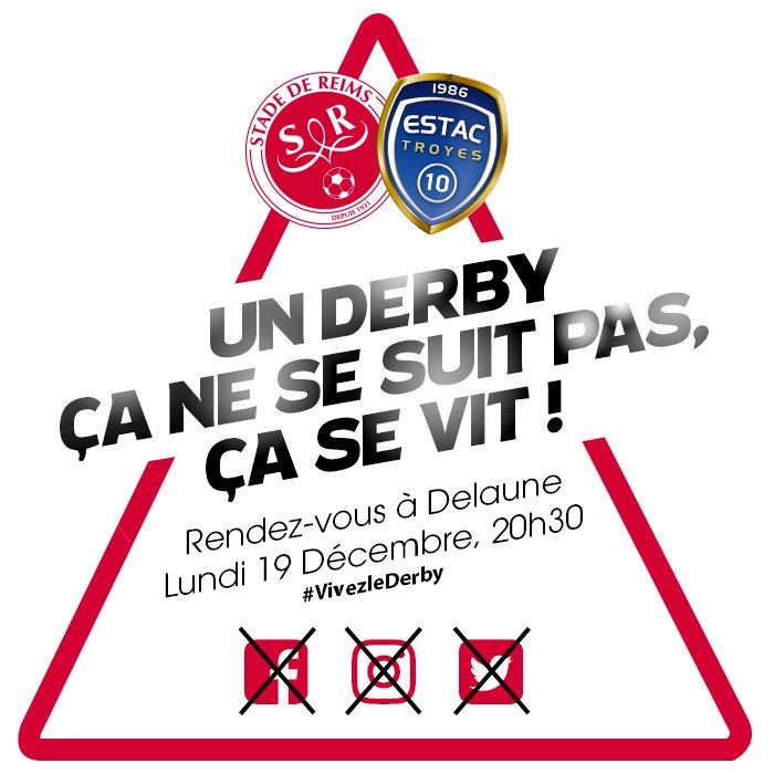 « Nous sommes plus de 360 000 sur les réseaux sociaux (Facebook, Twitter, Instagram), mais combien serons-nous lundi à Delaune ? Parce qu’un derby ça ne se suit pas, ça se vit, les réseaux sociaux du Stade de Reims seront fermés jusqu’au coup de sifflet final de SDR-ESTAC. Une seule adresse pour exprimer votre ferveur : celle de Delaune lundi soir ! ». C’est par ces mots que le club mobilise ses fans autour du match de lundi en les incitant à venir au stade. Une prise de parole qui peut surprendre à l’heure où le stade connecté est l’expérience 2.0 du Fan sont « glorifiés ».