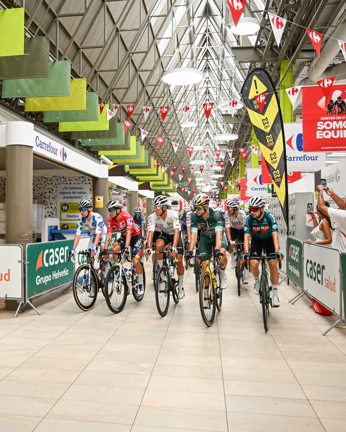 Que ne sont pas prêts à faire les sponsors pour faire parler d’eux ?! Le 22 août à l’occasion de la 6 étape, le peloton et la voiture de direction ont parcouru les premiers mètres à l’intérieur de l’hypermarché Carrefour Jerez Sur.