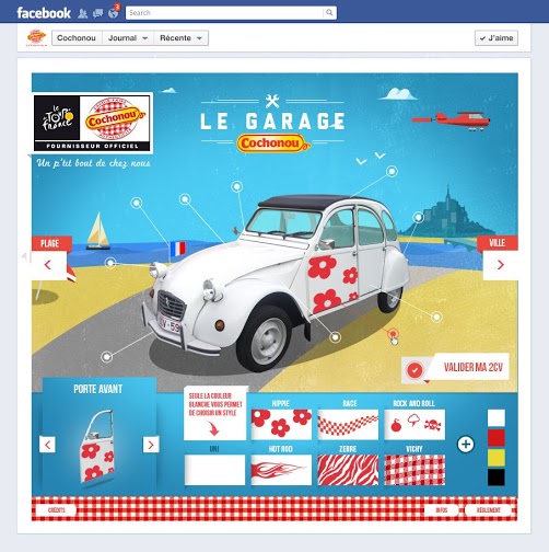 A l’occasion du Tour de France 2014 qui s’élance demain de Leeds, la marque Cochonou, « Fournisseur Officiel de Saucisson » de la Grande Boucle partagera une fois de plus son enthousiasme et sa convivialité au travers de ces célèbres 2CV vichy présentes dans la Caravane Publicitaire. Cette année, Cochonou prolonge le plaisir sur sa Page Facebook en invitant les internautes à venir créer leur deudeuche personnalisée via le dispositif « Le Garage Cochonou » et tenter de la remporter pour de vrai ! Les 50 créations qui récolteront le plus de votes seront présentées à un jury qui désignera l’heureux gagnant de sa 2CV customisée d’une valeur de 10 000€. Cerise sur le gâteau, la marque invite le gagnant et la personne de son choix à vivre de l’intérieur l’ultime étape du Tour de France 2014 sur les Champs Elysées à bord de sa propre 2CV !