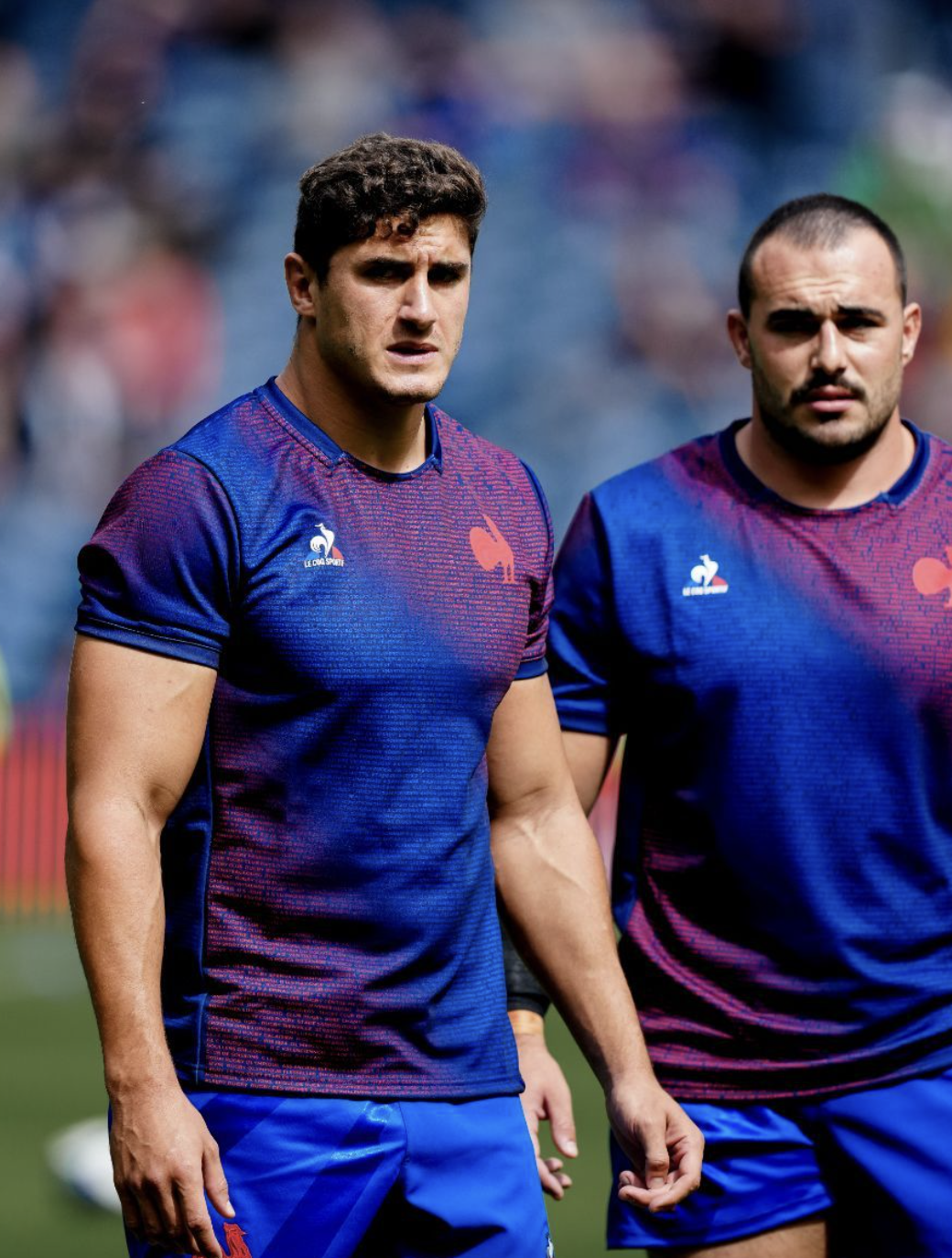 Pendant cette Coupe du Monde 2023 organisé sur le sol français, l’Equipe de France et Le Coq Sportif rendent hommage à l’ensemble des clubs de rugby amateurs. Sur le maillot d’échauffement des hommes de Fabien Galthié figure ainsi le nom de 1 946 clubs en rouge ou bleu donnant ainsi un style dégradé / effacé au maillot. Soit l’entièreté des clubs amateurs de rugby en France.