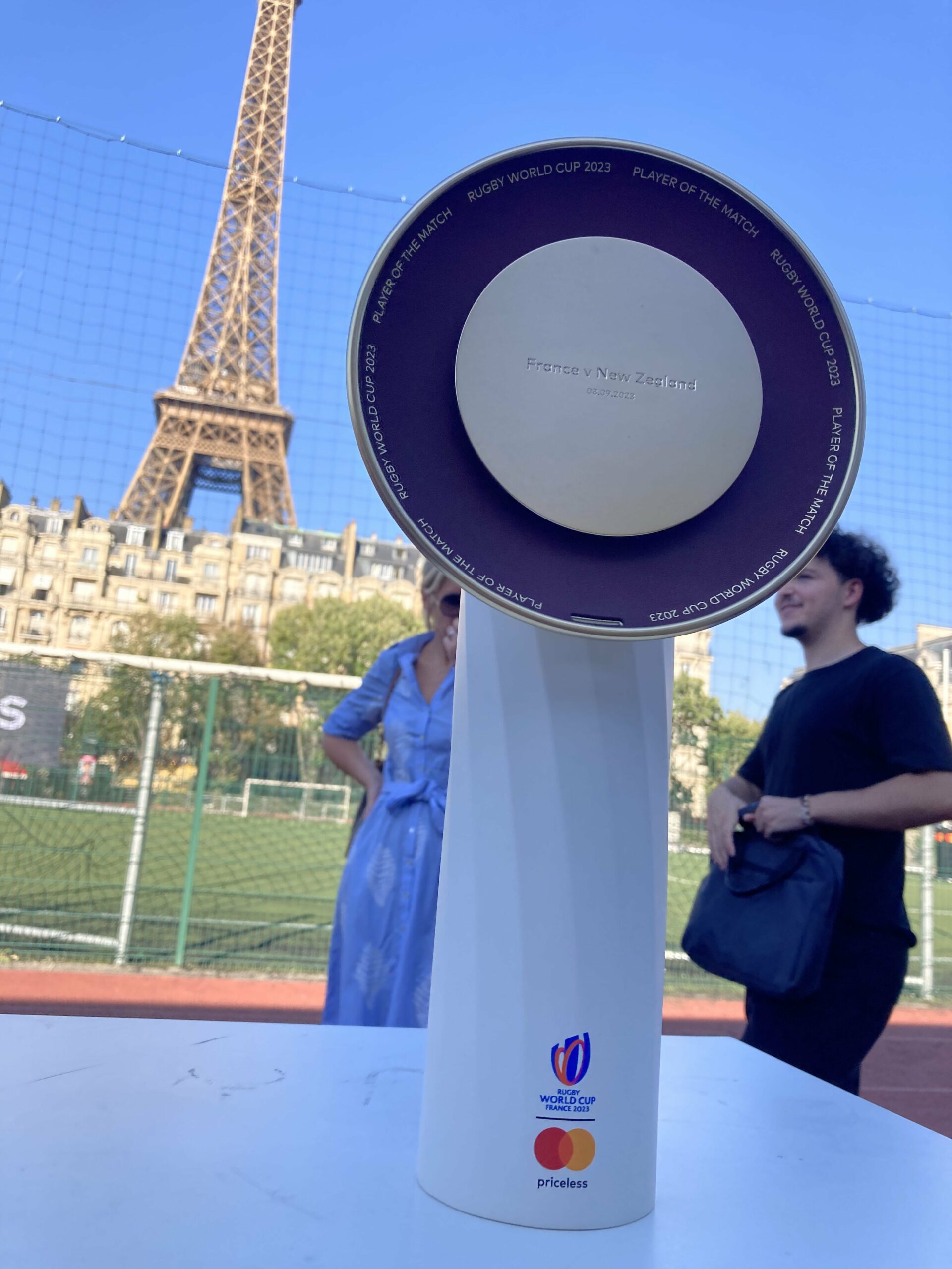 Pendant cette Coupe du Monde de rugby 2023, Mastercard sponsorise le trophée d’homme du match qui diffusera de la musique et des commentaires du match en question.