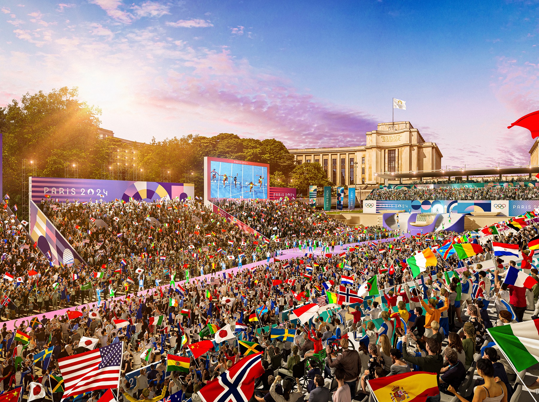 En fin de matinée, Paris 2024 et « l’ensemble de ses parties prenantes » ont dévoilé les sites et dispositifs de célébrations installés pendant les Jeux Olympiques. Une annonce accompagnée de visuels 3D toujours impactant qui font saliver.