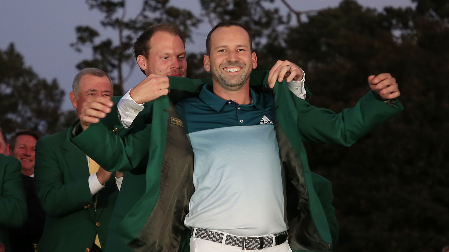 Avec ce premier titre dans un majeur, Sergio Garcia a enfilé la traditionnelle veste verte remise au vainqueur.