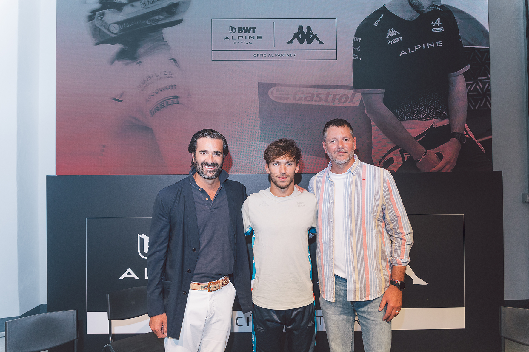 Fin août, Kappa a présenté sa nouvelle collection « Trackside » depuis Milan en présence de Pierre Gasly, pilote Alpine F1, Rémi Garnier, Country Manager Kappa France et Lorenzo Boglione, vice-président du groupe italien BasicNet qui possède la marque Kappa.