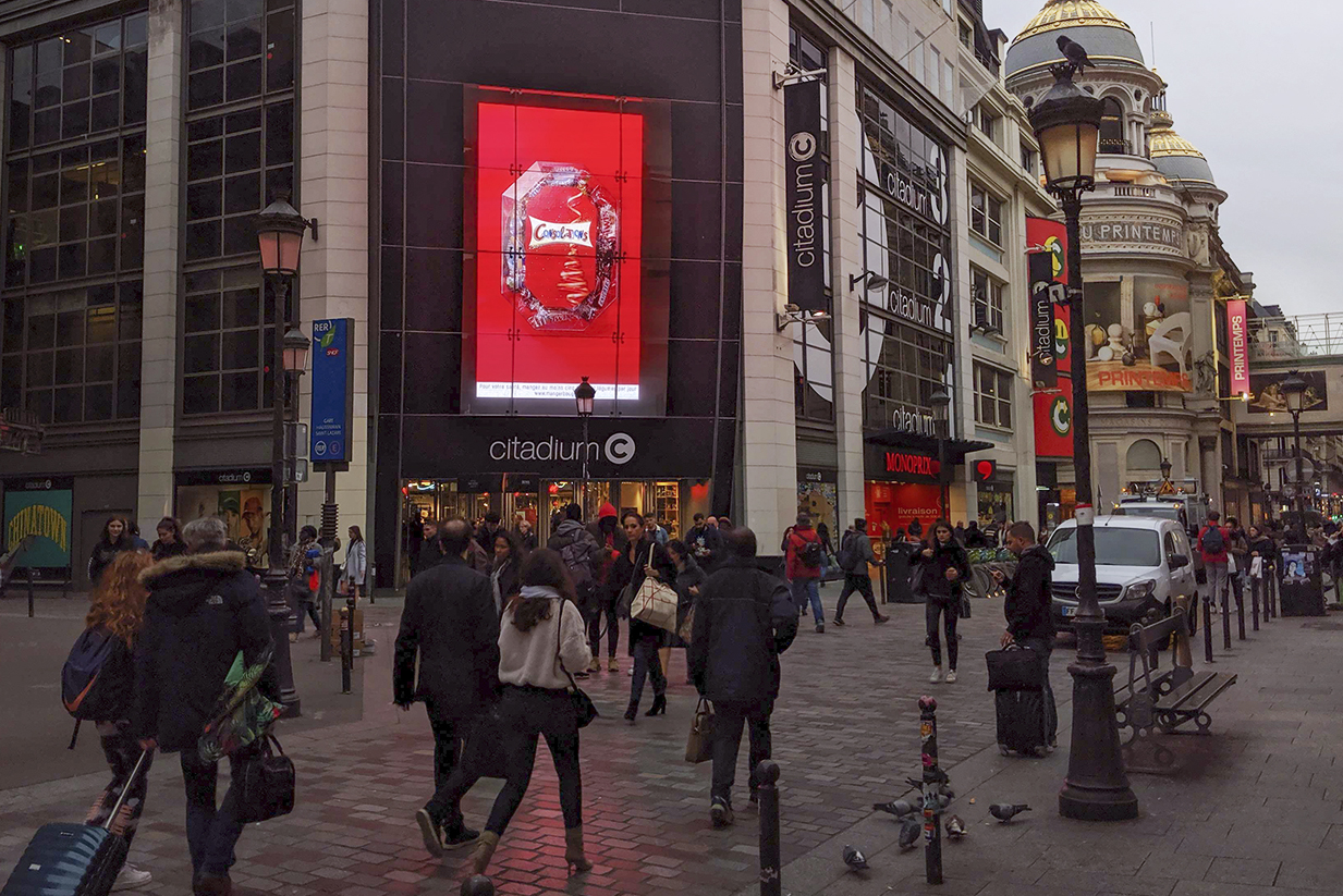 Un print décliné dans une version animée projetée notamment sur la façade du Citadium à Paris.