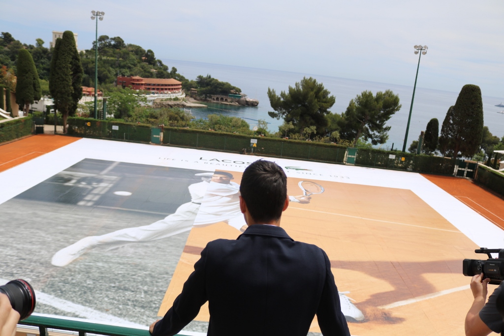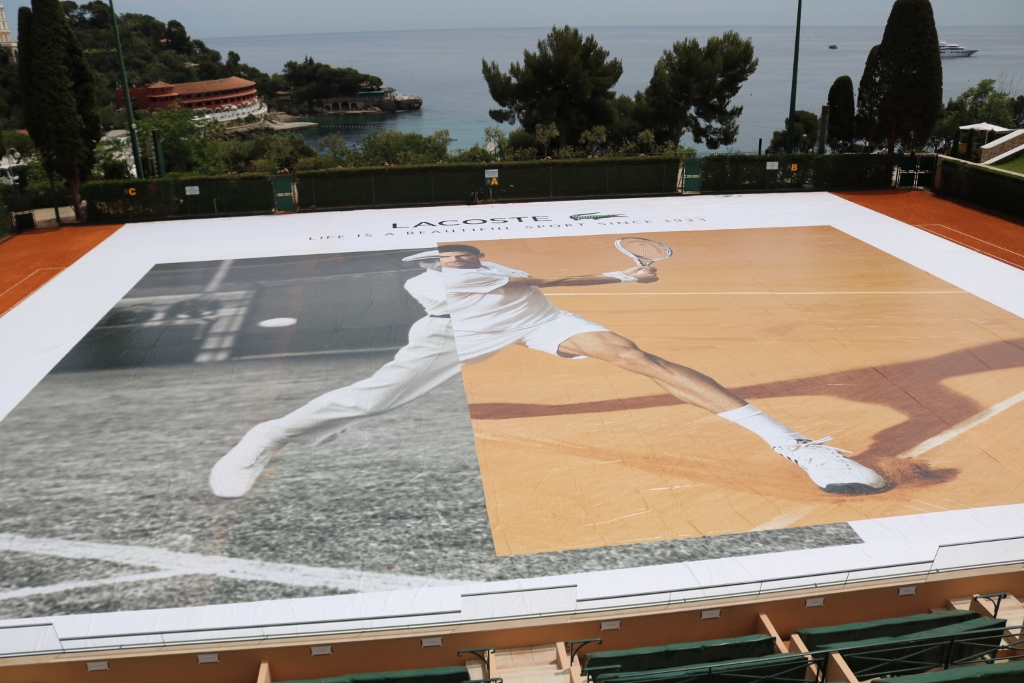 Organisé au Monte-Carlo Country Club, Lacoste a profité de la conférence de presse pour installer un affichage géant sur les courts.