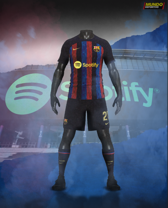 Le média espagnol Mundo Deportivo a illustré ci-dessous ce à quoi pourrait ressembler le futur maillot domicile 2022-2023 du FC Barcelone avec le logo Spotify sur la face avant. Selon Mundo Deportivo, le montant du contrat qui n’a pas été communiqué officiellement se situerait entre 65 et 70 millions d’euros par saison. Pour rappel, le stade du Barça va prochainement être rénové et modernisé et les joueurs du Barça devraient évoluer ailleurs pendant 1 saison. Les travaux, partie intégrante du projet Espai Barça, transformeront les installations du club pour en faire un véritable lieu de divertissement. Le montant du contrat de Naming devrait donc logiquement être revu à la hausse.