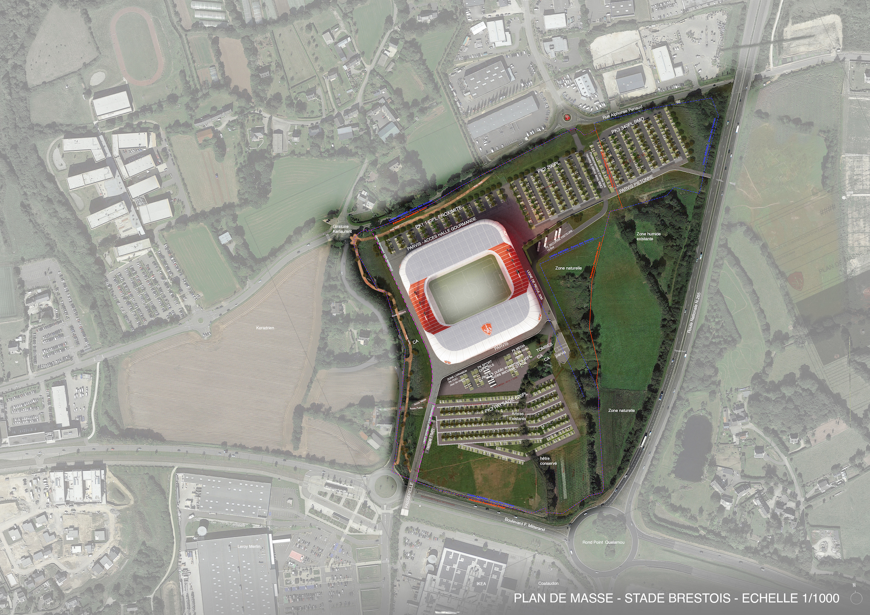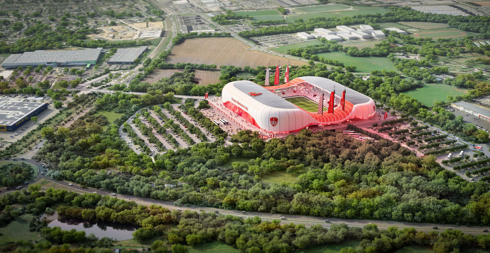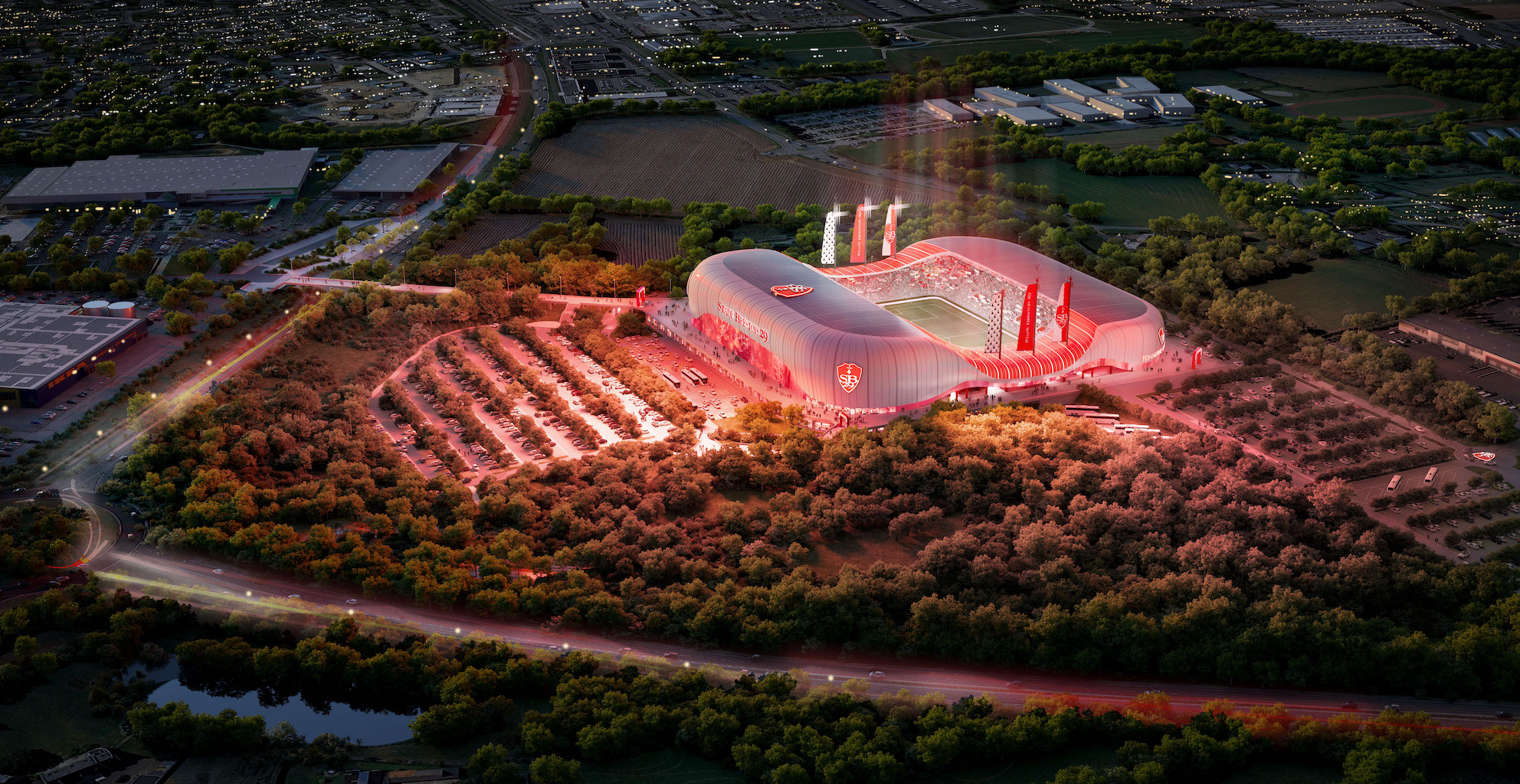 A partir de 2026, date de livraison du nouveau stade, le club breton s’expatriera dans la zone du Froutven à Guipavas, à l’est de la Métropole de Brest, sur un terrain fonctionnel et accessible de 18 hectares.