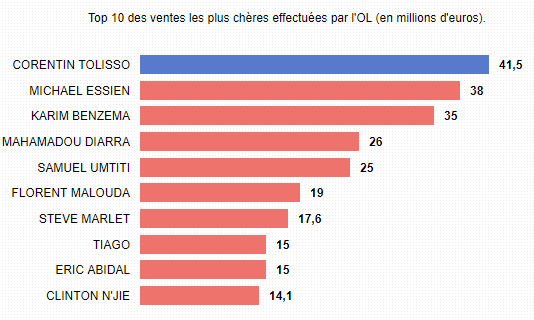 TOP 10 des meilleures ventes de joueurs de l’Olympique Lyonnais