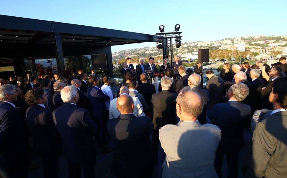 Laura Flessel (Ministre des Sports), Christian Estrosi (Maire de Nice), Nathalie Boy de La Tour (Présidente LFP), coach, staff, joueurs, partenaires, représentants des groupes de supporters, journalistes… Les personnes présentes pour cette inauguration ont notamment pu profiter de la terrasse panoramique de 550m2 installé sur le toit du bâtiment !