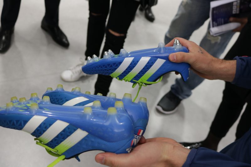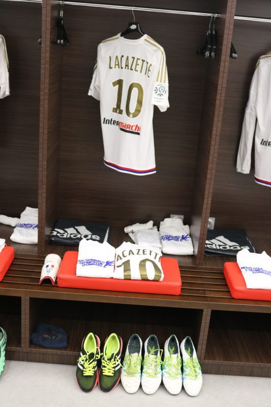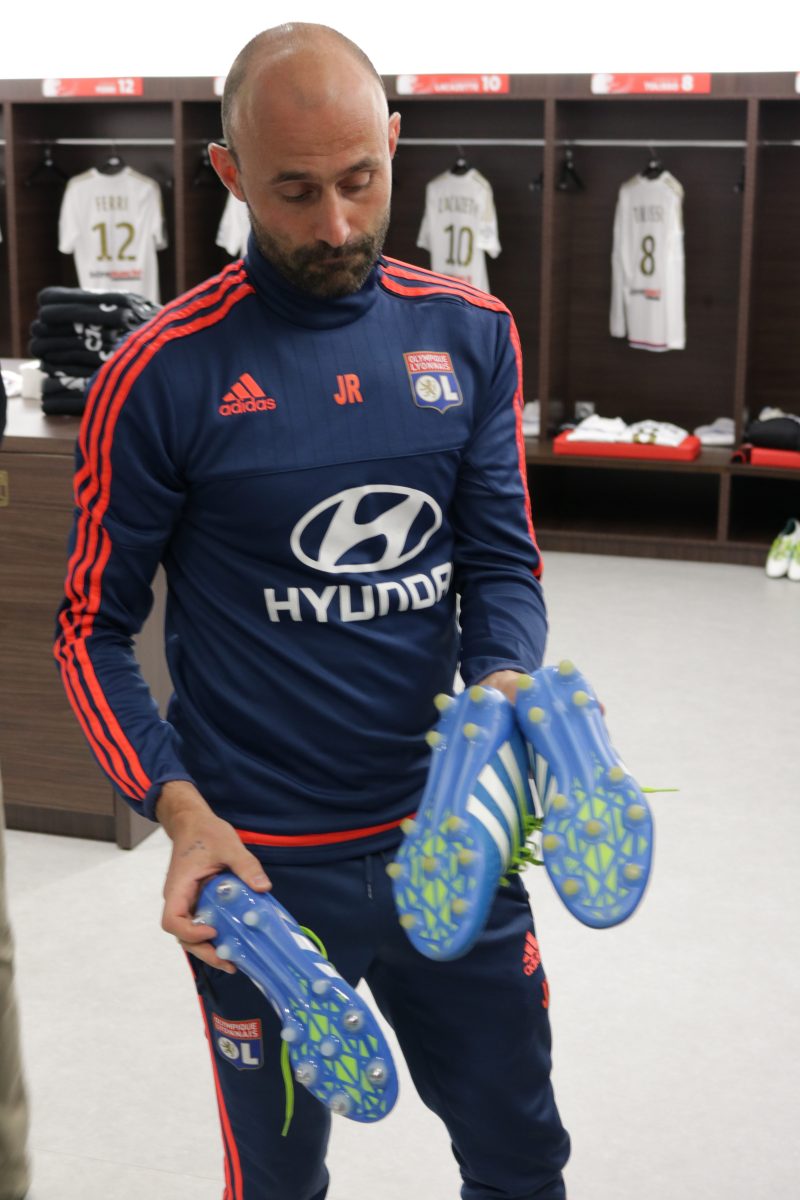 Visite du vestiaire avec Jérôme Renaud, intendant de l’OL, qui nous a présenté les différents crampons Ace 16 de Clément Grenier, ambassadeur adidas.