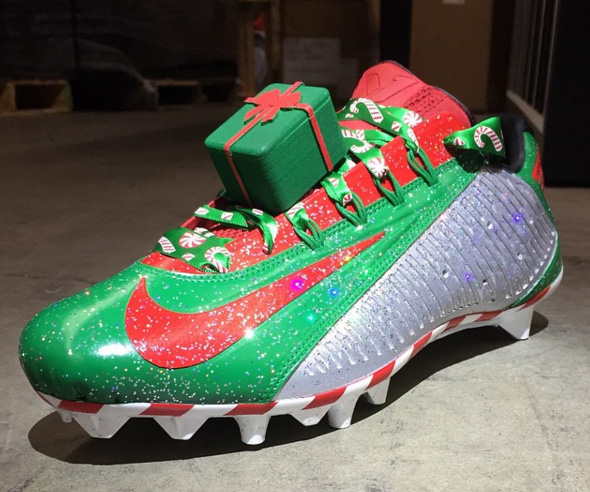 Hier, les New York Giants se sont inclinés au MetLife Stadium face aux Carolina Panthers (35-38). Une rencontre NFL illuminée par les chaussures Nike customisées « cadeaux de Noël » portée par Odell Beckham Jr lors de l’échauffement.