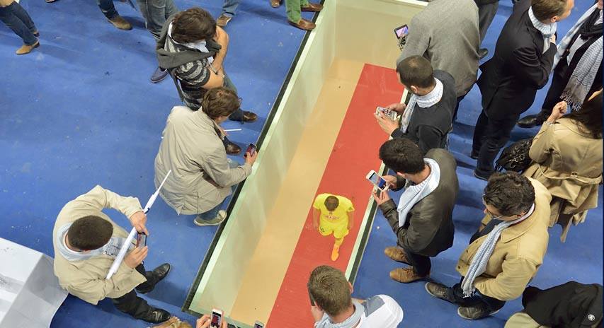 Pour ce match inaugural, la société informatique (tablettes, PC, smartphones, moniteurs, vidéoprojecteurs…) s’est installée dans les 2 boutiques éphèmères du stade situées dans la coursive 360° afin de partir à la rencontre des spectateurs. Au total, ce sont une petite douzaine d’hôtesses et démonstrateurs qui ont opéré lors de cette soirée.