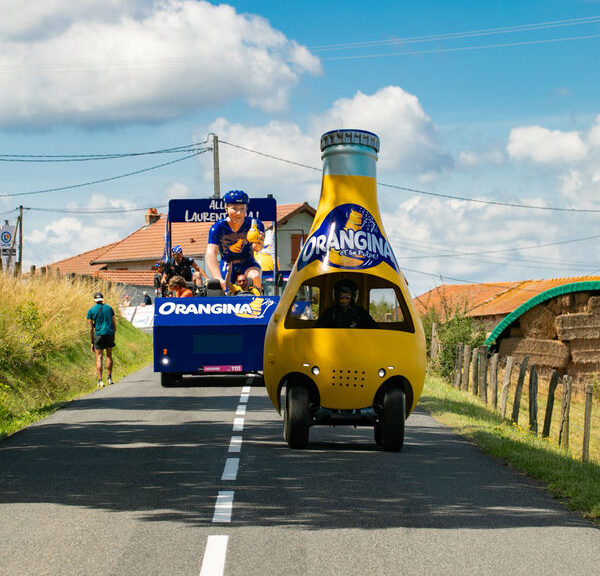 « C’est le cycliste secoué de la caravane » nous explique Andréa Gaussot, chef de produit chez Orangina.