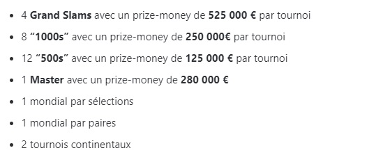 Comme le rapporte Padel Magazine, une proposition a été formulée pour lancer un circuit en collaboration avec la Fédération Internationale de Padel (FIP) dès 2022. Avec des dotations financières conséquentes, 525 000€ de prize money pour chaque Grand Chelem (4 par saisons) selon le média français.