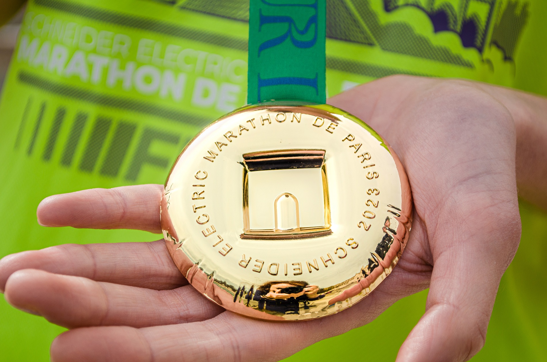 La création de la médaille officielle de l’édition 2023 du Schneider Electric Marathon de Paris a été confiée à Bina Baitel, architecte française. Elle sera remise à chaque finisher de la course. Un t-shirt « finisher » conçu par Asics sera également distribué.