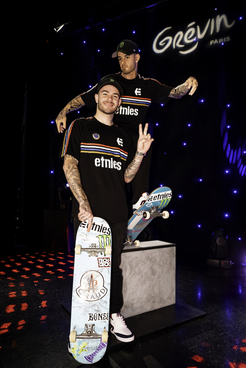 Pour son double en cire, le musée d’Aurélien Giraud a évidemment mis le sportif en situation sur son skateboard. Un travail de reproduction qui aura duré 6 mois et qui ravira deux des sponsors de l’athlète, Monster Energy et etnies, bien visibles sur la casquette (47), le t-shirt, les sneakers et le skate. Une visibilité non négligeable pour les deux marques puisque le musée revendique plus de 900 000 visiteurs chaque année.