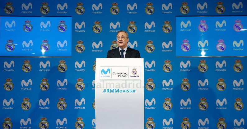 Ce midi, le Président du Real Madrid Florentino Pérez a officialisé la signature d’un contrat de partenariat avec Telefonica (Movistar…).