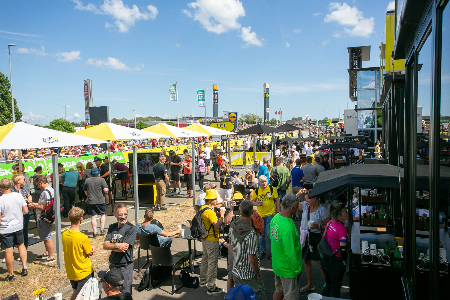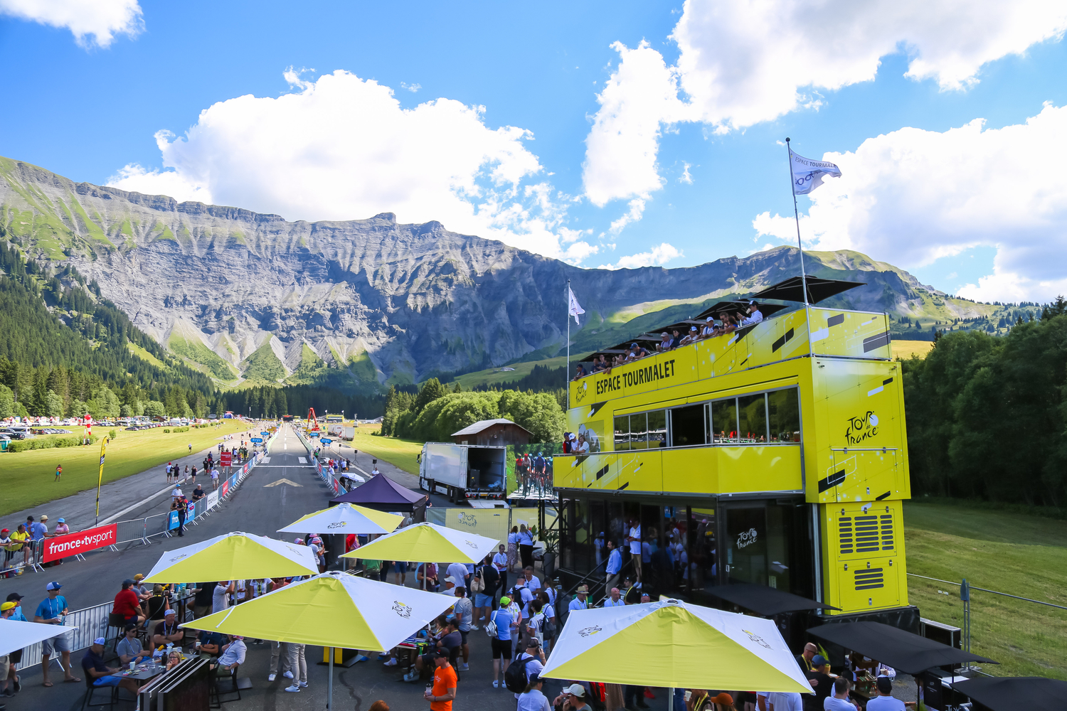 Sur les étapes du Tour, A.S.O. propose également des formules d’hospitalités comme le Relai Etape installé sur le parcours (3000 € HT pour une table de 10 personnes) ou l’Espace Galibier installé généralement à l’arrivée (50 000 € HT pour 100 personnes). Des lieux de vie qui sont également fournit par Sodexo Live!. « La restauration est indissociable de l’accueil de personnes en hospitalités. J’ai travaillé 20 ans avec Roland-Garros… Quand on veut bien accueillir les clients et invités, il faut qu’ils gardent le souvenir d’une journée mémorable, ça passe par l’accueil et la restauration… On fait avec les moyens en extérieur et en itinérance ».