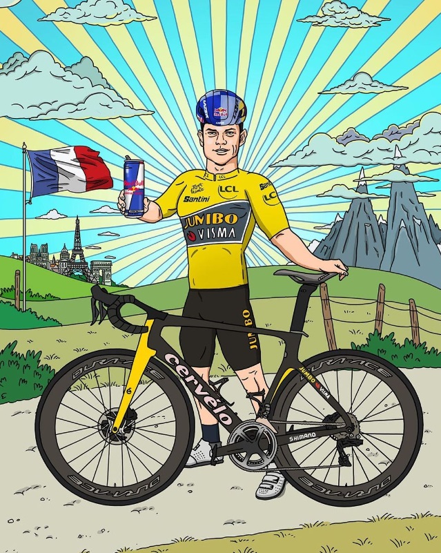 Hier, Wout van Aert a remporté la 4ème étape du Tour de France 2022 à Calais, avec le Maillot Jaune sur les épaules. L’occasion pour le coureur cycliste de l’équipe Jumbo-Visma de faire « briller » son sponsor Red Bull.