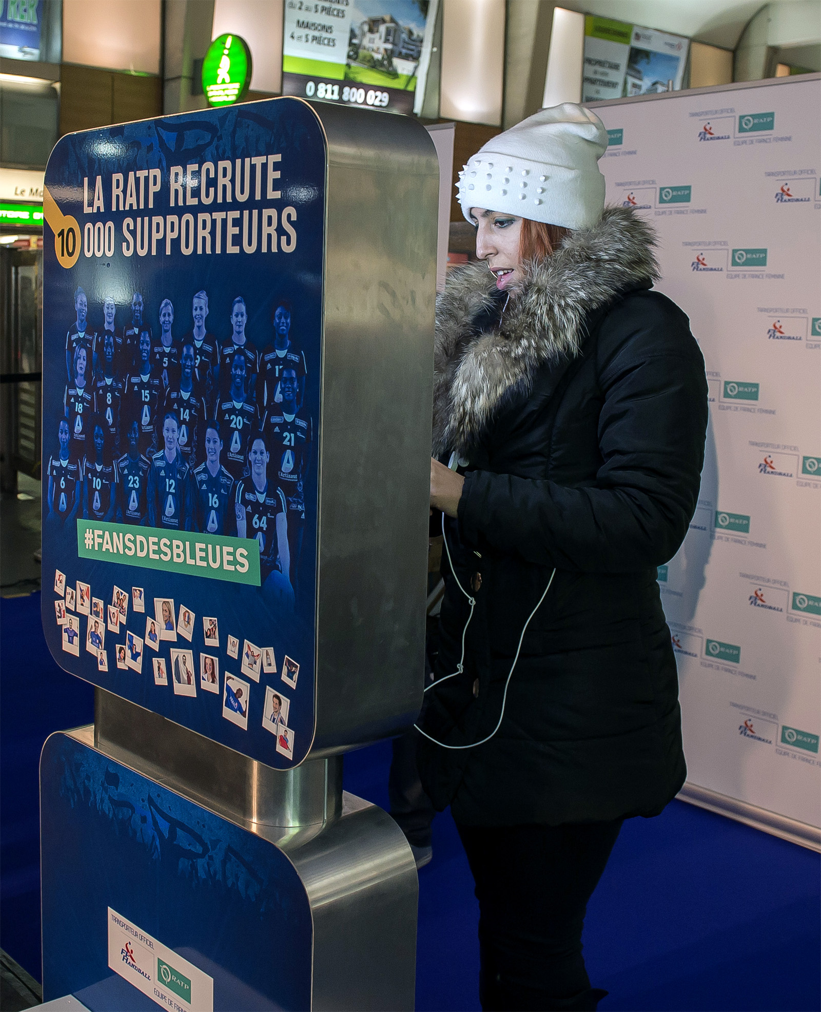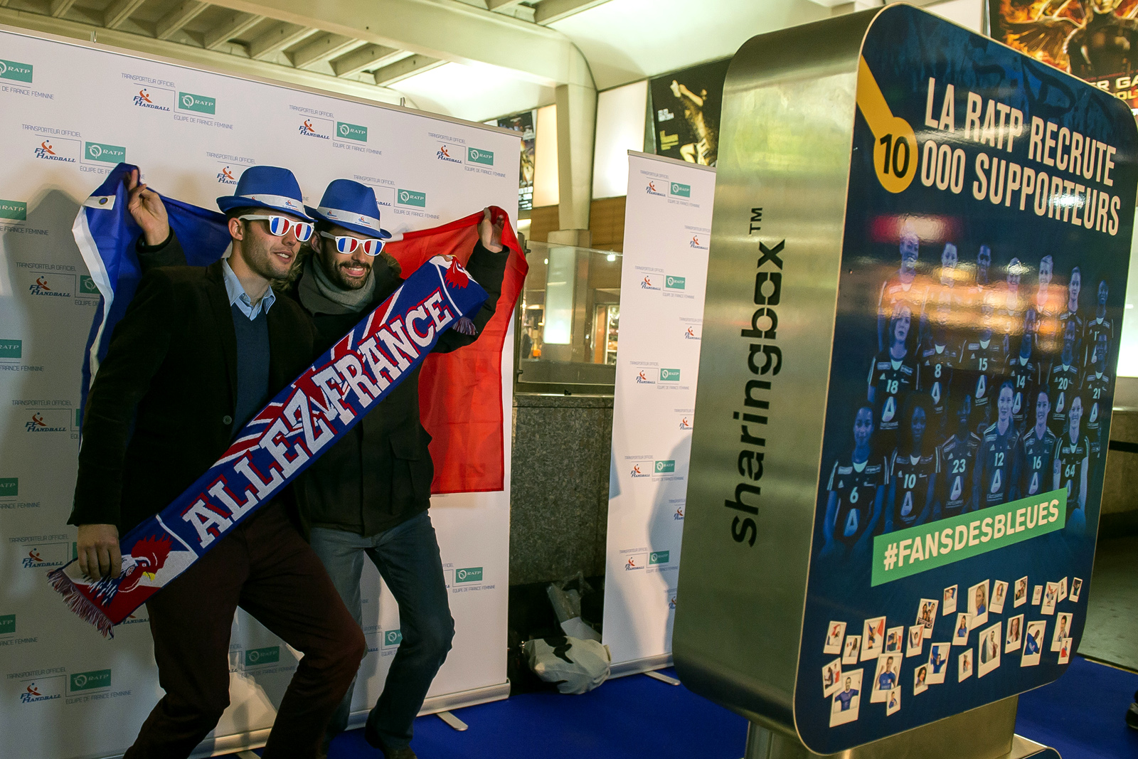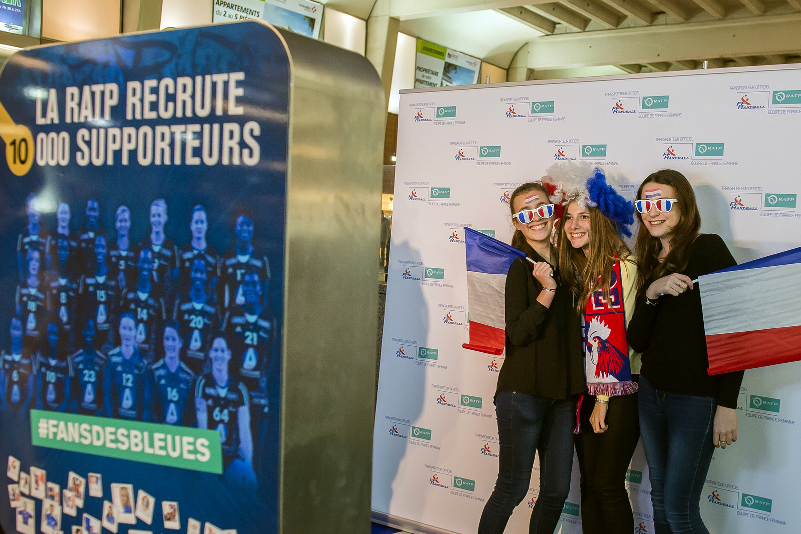 Depuis hier et jusqu’à aujourd’hui, 4 stands photos sont mis en place sur le réseau RATP pour recueillir les photos de Fans qui souhaitent apparaître sur le bus des joueuses de l’Equipe de France de Handball et participer au concours. Installé hier aux stations Saint-Lazare et La Défense, le dispositif est présent aujourd’hui aux stations Gare de Lyon et Bibliothèque F. Mitterrand.
