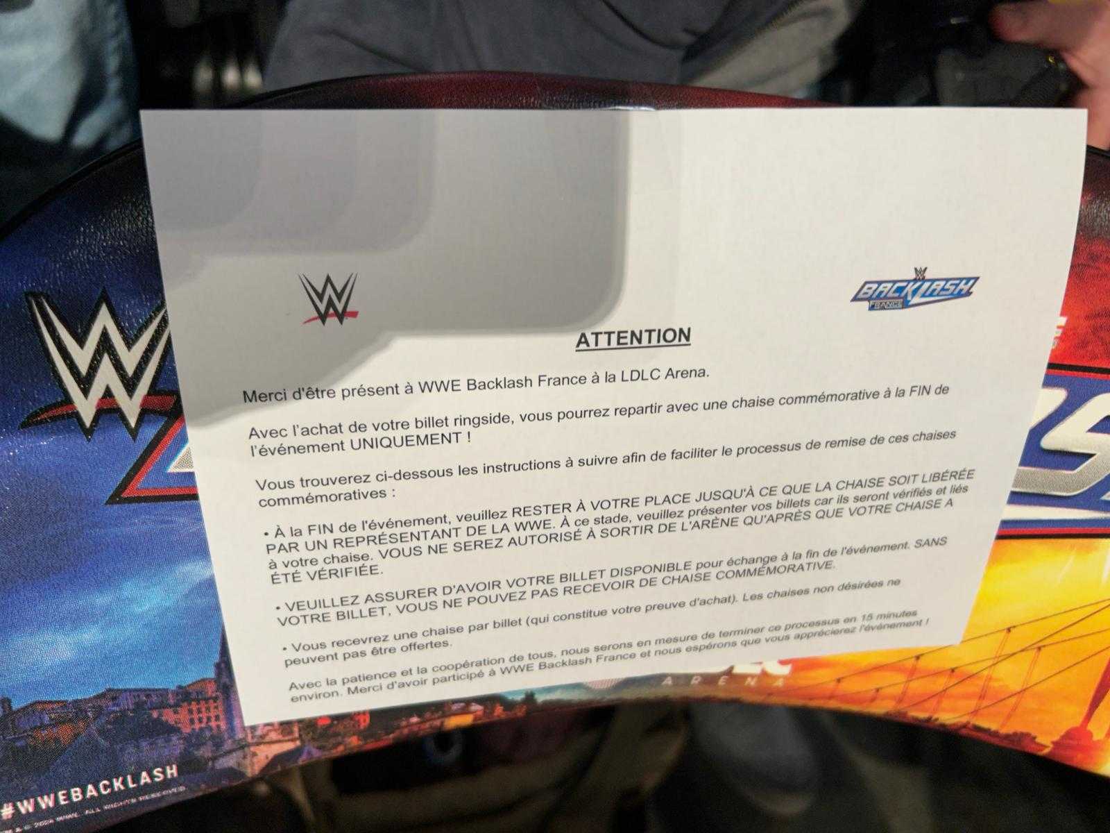 Pour sa venue à @LDLC_Arena, la WWE offre une chaise souvenir aux détenteurs de billets "ringside".