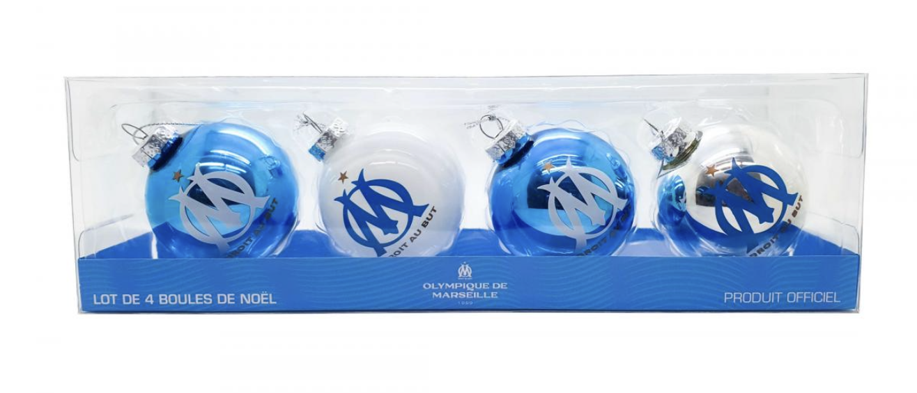 Dans la tradition marseillaise, les boules ont une place à part entière. Avec celle-ci les supporter de l’OM ne pourront pas jouer avec, mais plutôt décoré leur sapin. 4 boules aux couleurs des Phocéens, comme pour rappelé le classement du club (4e) en cette trêve hivernale.