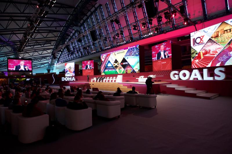 Nos étudiants en compagnie d’autres étudiants pr réfléchir autour du sujet « Le développement par le sport »#DohaGoals pic.twitter.com/FVGOEfllw6