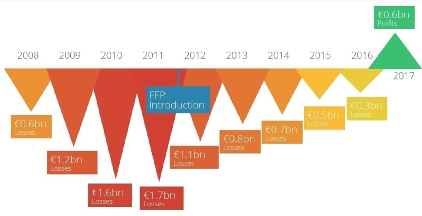 En début de semaine, l’UEFA a présenté quelques chiffres sur la santé économique des 718 clubs de première division en Europe. Pour la première fois depuis l’introduction du Fair Play Financier, les clubs européens affichent des bénéfices cumulés.