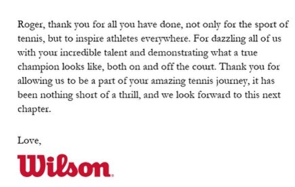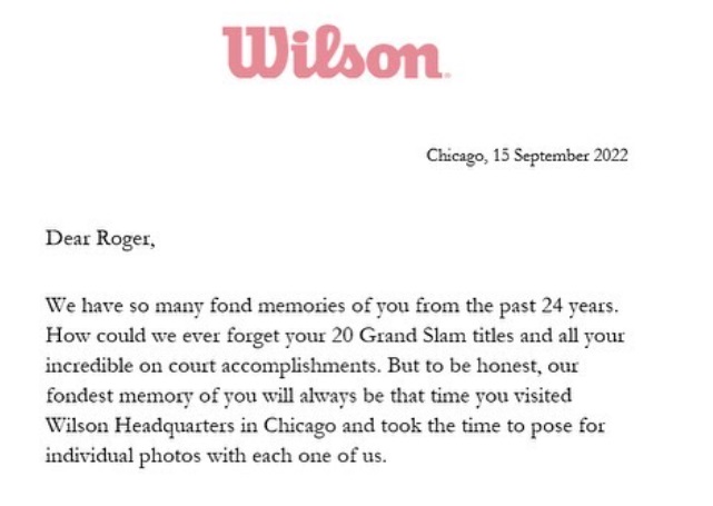 De son côté, Wilson, son équipementier raquette, a fait dans l’originalité en répondant à la lettre de Roger publié sur ses réseaux sociaux en répondant par une autre lettre adressée au suisse.