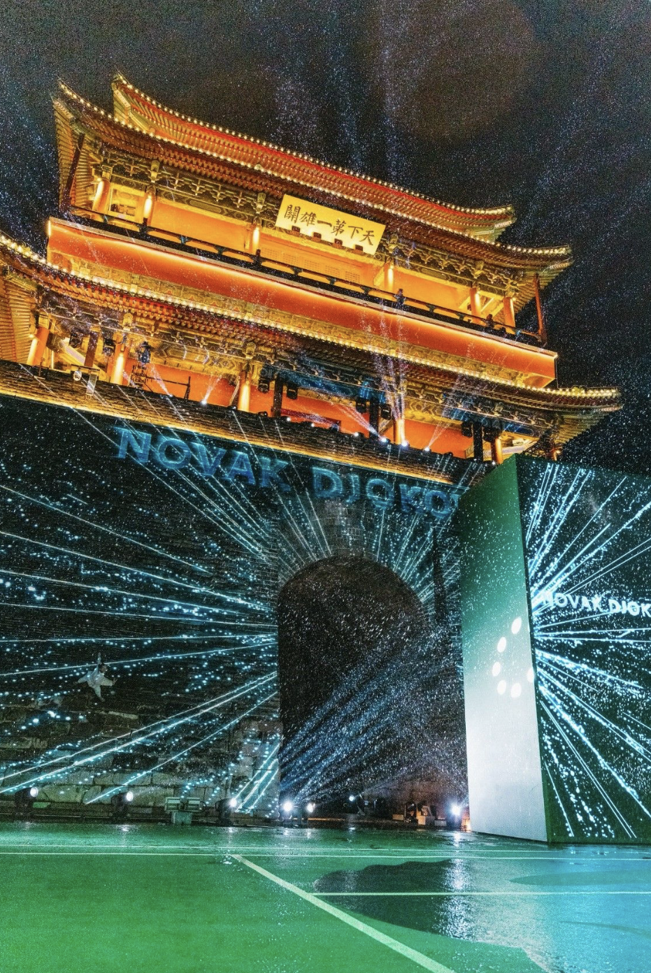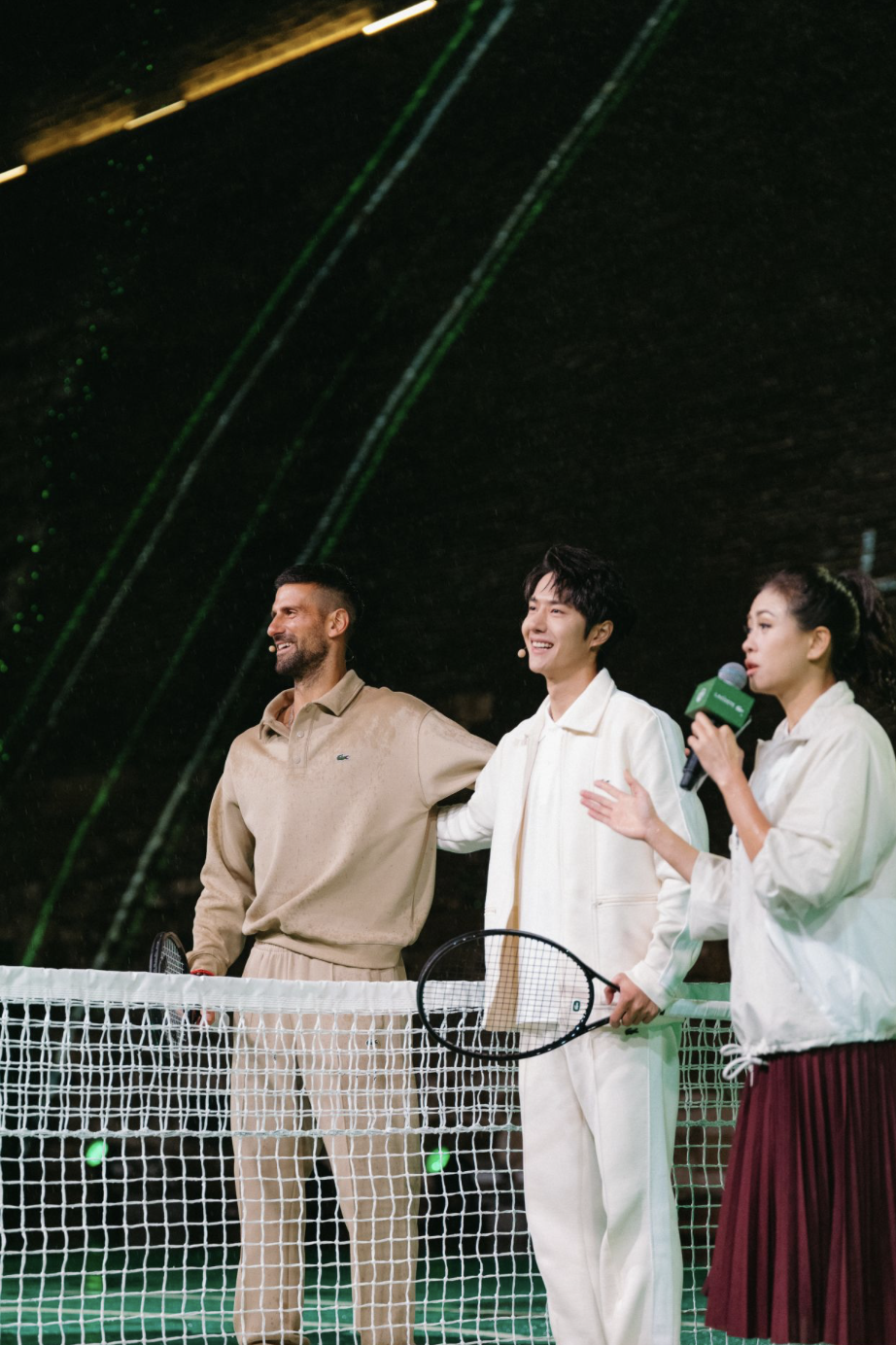 Accompagné de l’artiste Wang Yibo, le tennisman serbe a pu découvrir une grande muraille « verte » Lacoste et profiter d’un terrain de tennis pour le moins unique.