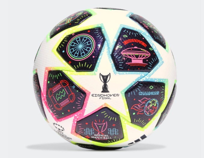 Côté look, le ballon est décoré de motifs lumineux sur un fond bleu foncé qui représente la nuit, afin de rendre hommage au surnom d’Eindhoven, ville qui accueillera la finale. « Chaque motif de couleur néon représente un site célèbre de la ville, dont le stade d’Eindhoven. Des étoiles d’un blanc nacré sont dessinées par les contours fluorescents des fenêtres abritant les graphismes afin de souligner le contraste entre les impressionnantes œuvres architecturales historiques et modernes d’Eindhoven et de saluer les jeux de lumière artistiques qui éclairent la ville. » précise adidas.