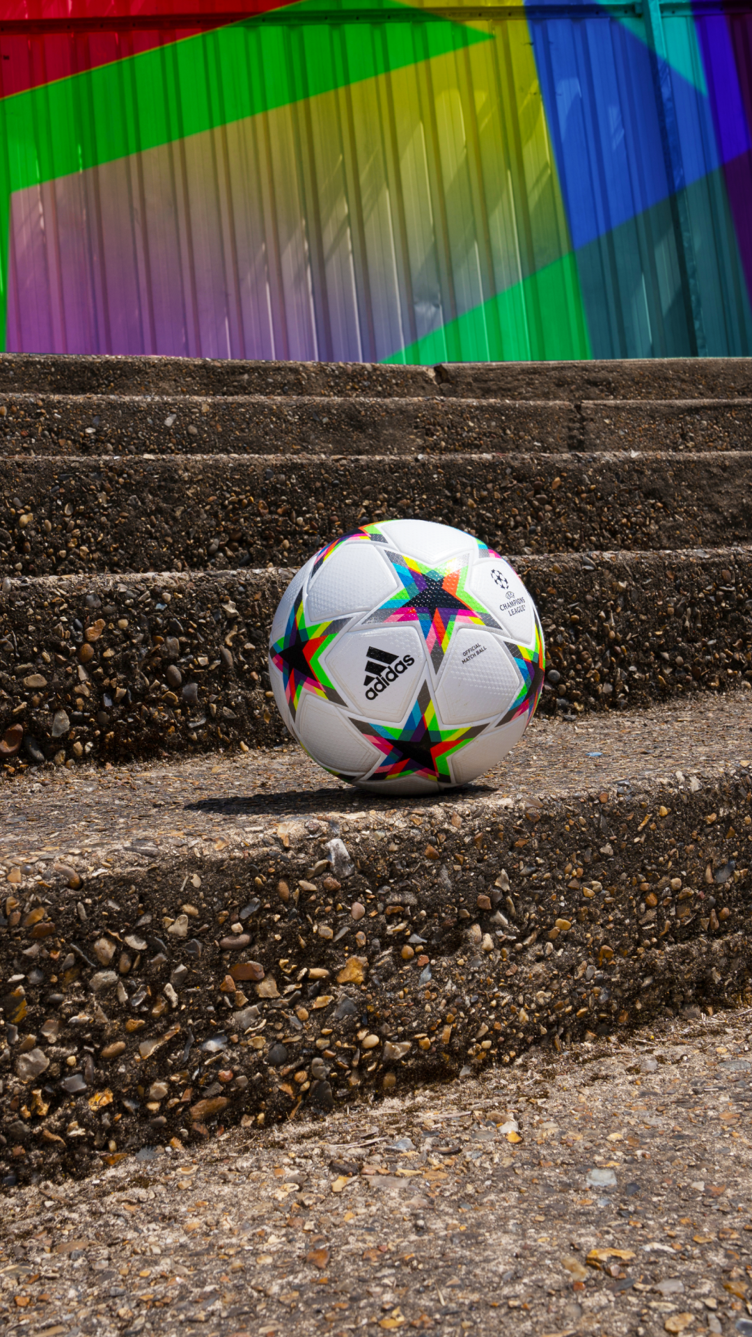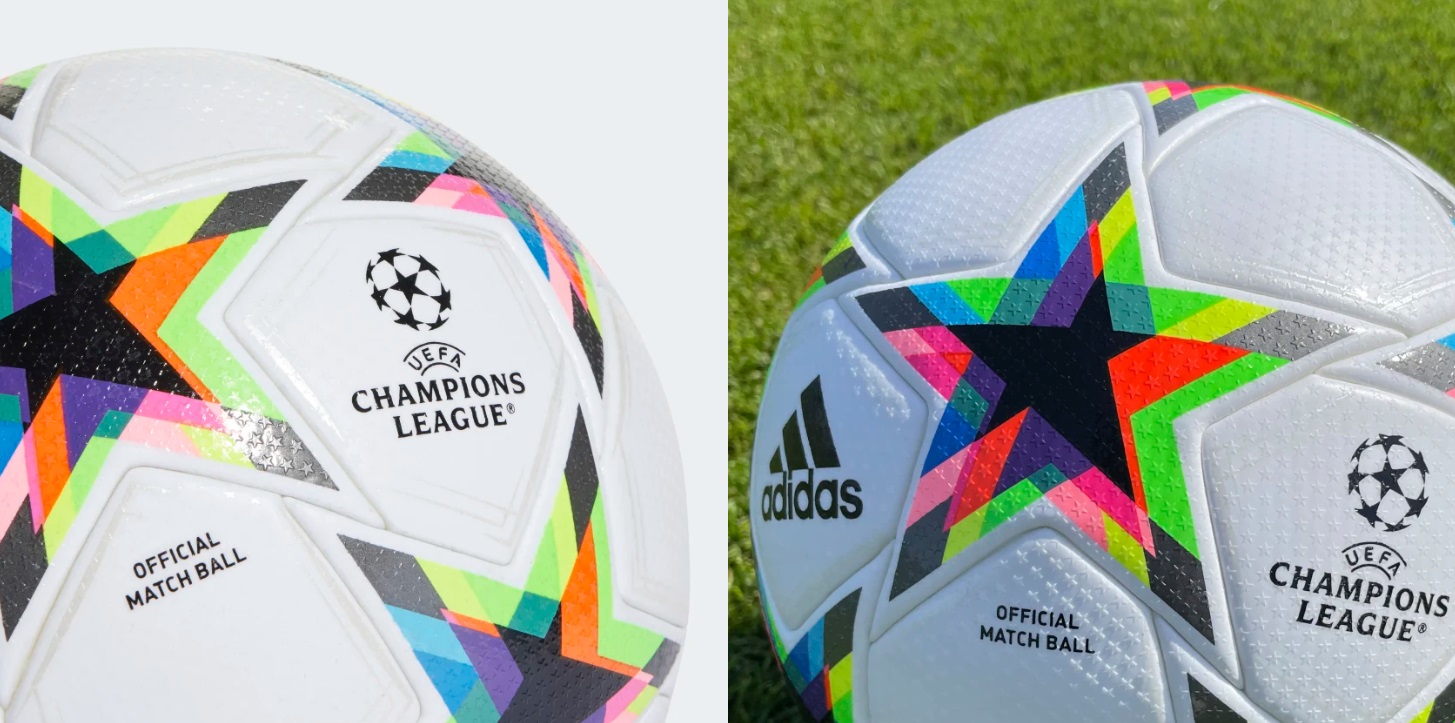 Baptisé « UCL Pro Void », ce nouveau ballon adidas mise à nouveau sur un design utilisant les célèbres étoiles de la Ligue des Champions, colorées cette saison par une multitude de couleurs flashy.