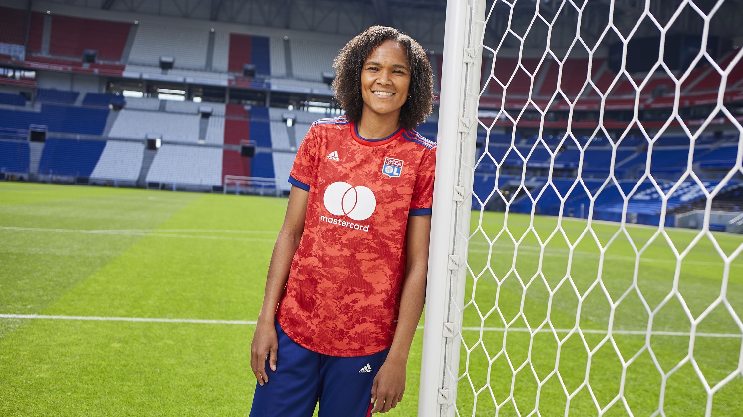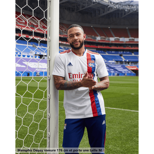Pour le maillot domicile, la marque aux trois bandes et l’OL misent sur le retour de la bande verticale rouge et bleue sur la face avant, alignée sur la gauche du maillot englobant ainsi le blason du club. Un jersey qui sera porté pour la première fois ce dimanche pour la dernière journée de Ligue 1 Uber Eats contre l’OGC Nice.