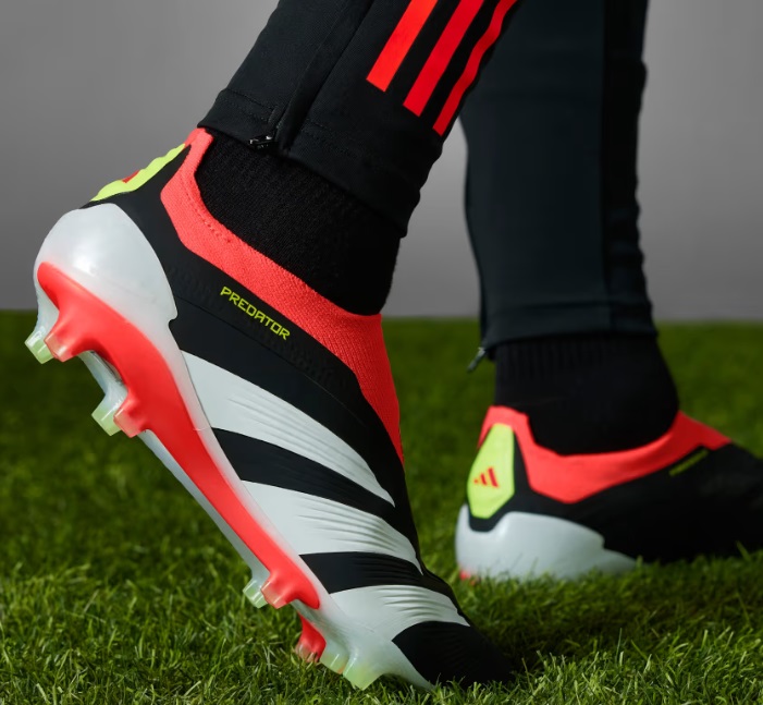 Côté produit, la Predator 24 s’inspire du look de la chaussure lancée en 1994 et reprend quelques caractéristiques des années 90 comme la fameuse languette rabattable et la palette tricolore.