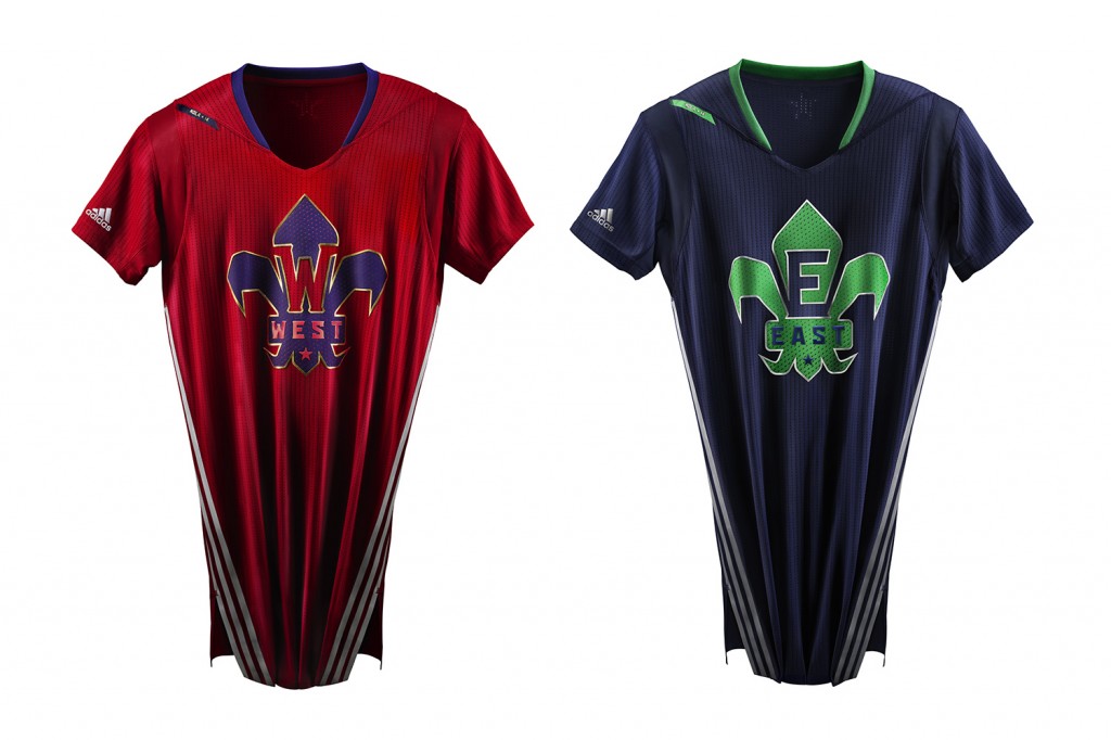 adidas, fournisseur officiel de la NBA, a dévoilé officiellement les maillots du 63ème All Star Game qui se déroulera le 16 Février prochain à la Nouvelle Orléans. Le communiqué précise que « les tenues sont inspirées par la culture riche et unique de la Nouvelle Orléans, associées aux couleurs du Mardi Gras, et aux accents argentés et brillants présents sur les maillots à manches courtes (short-sleeve). Le logo du All Star Game apparaît sur le torse du maillot dans une fleur de lys, symbole de la Louisiane, représenté par un « W » ou un « E » pour identifier les conférences. Ces maillots manches courtes seront disponibles à la vente au prix de 60 euros.