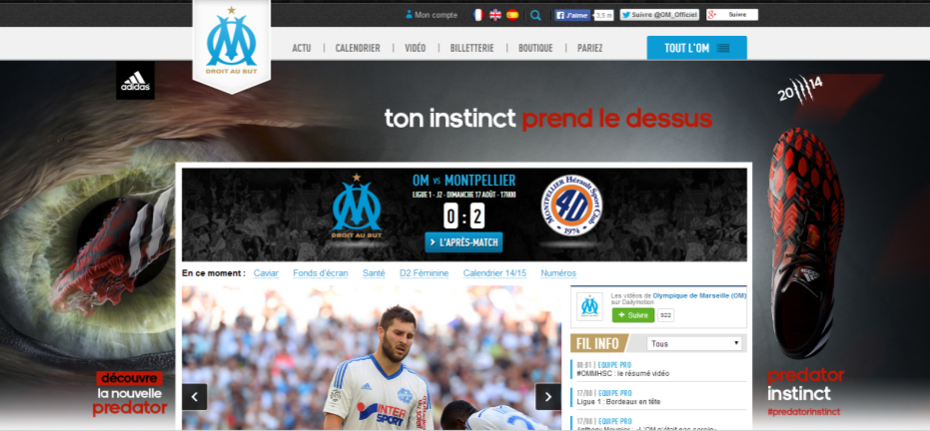 Pour toucher les fans, la Predator Instinct était également bien visible dans les programmes de match distribués en tribune ou encore sur les différents sites officiels des clubs via des bannières et de l’habillage.