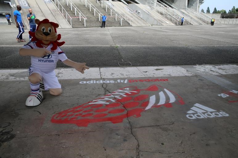 A l’occasion des rencontres de l’Olympique Lyonnais de ce début de saison, le banc de touche de Gerland a été décoré aux couleurs de la chaussure adidas Predator Instinct. A l’extérieur du stade, un marquage a également été réalisé sur le sol à l’entrée de la tribune Jean Jaurès.