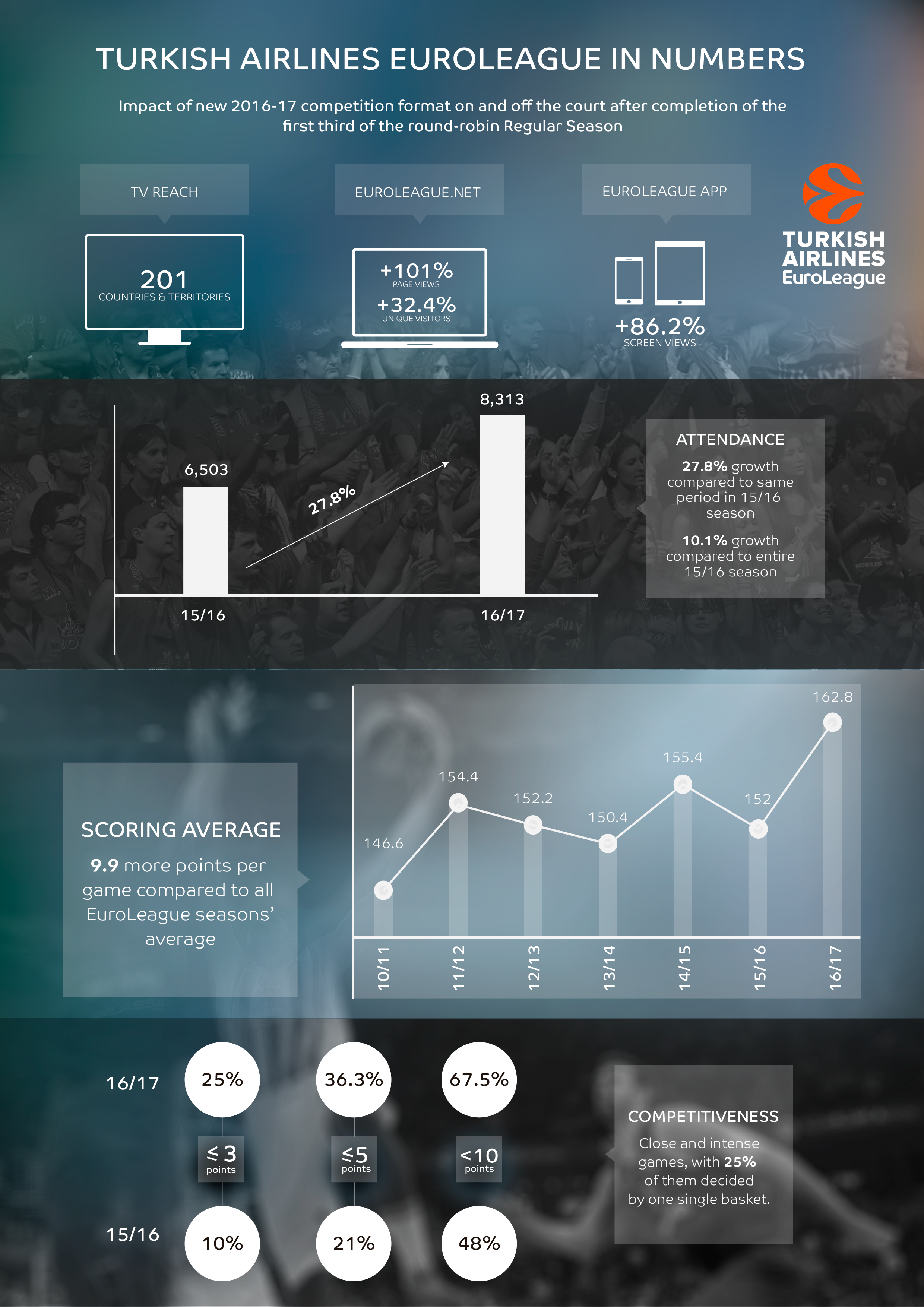 Après 10 journées de saison régulière, la Turkish Airlines EuroLeague semble se réjouir de l’instauration de nouvelles règles et du nouveau format de compétition offrant trente journées avec des match aller-retour entre les 16 équipes.