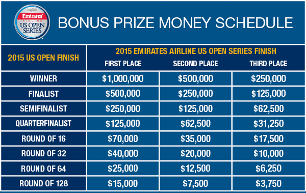 Cette année, ce sont 42,3 millions de dollars (38,6M€) qui seront redistribués aux joueurs et aux joueuses, une augmentation de 10,5% par rapport à 2014. Un record pour un Grand Chelem dépassant ainsi le précédent record détenu par Wimbledon cette année.