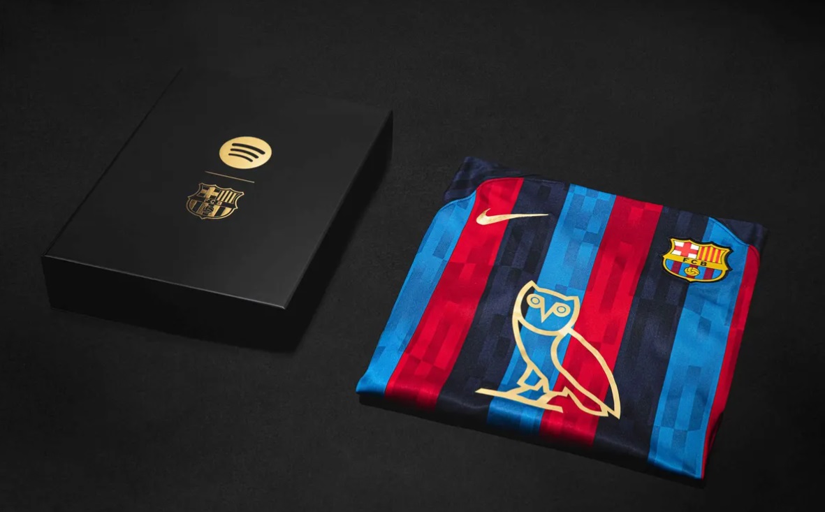 Ce fut le cas le 16 octobre dernier pour le match aller entre le club catalan et madrilène. L’habituelle inscription « Spotify » avait laissé place au célèbre hibou du label de Drake. Le rappeur canadien était le premier artiste à avoir atteint les 50 milliards d’écoutes sur la plateforme d’où cette activation.