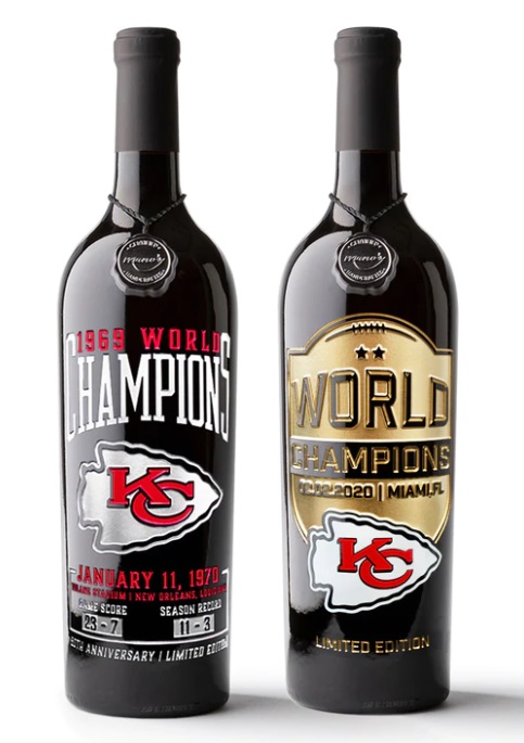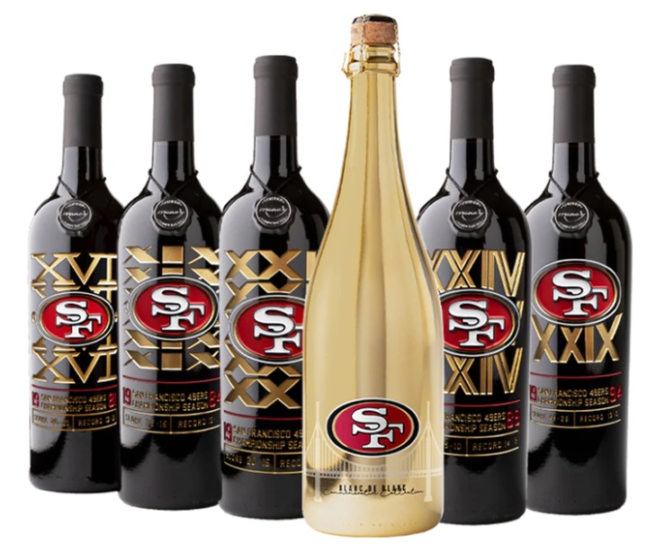 Certaines franchises NFL ont également des contrats avec des marques de vin comme Mano’s Wine qui propose encore à la vente des bouteilles aux couleurs des Patriots, Browns, Chiefs, Saints, Packers, 49ers,…
