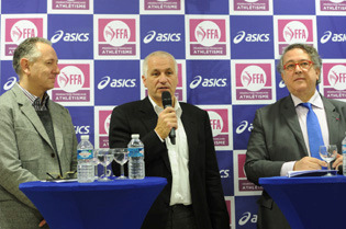 Le 1er janvier dernier, ASICS est devenu le nouveau partenaire de la Fédération Française d’Athlétisme, un contrat de de quatre ans qui associe la marque japonaise et la FFA, au titre de partenaire et d’équipementier officiels, jusqu’aux Jeux de Rio en 2016. Après avoir signé avec le tennisman français Gaël Monfils, le début d’année est chargé pour l’équipementier. Ce nouveau partenariat a été présenté vendredi dernier au showroom parisien de la marque, en présence notamment d’Alistair Cameron, PDG d’ASICS Europe, Didier Dreulle, PDG et fondateur d’ASICS France, et Bernard Amsalem, président de la Fédération Française d’Athlétisme.