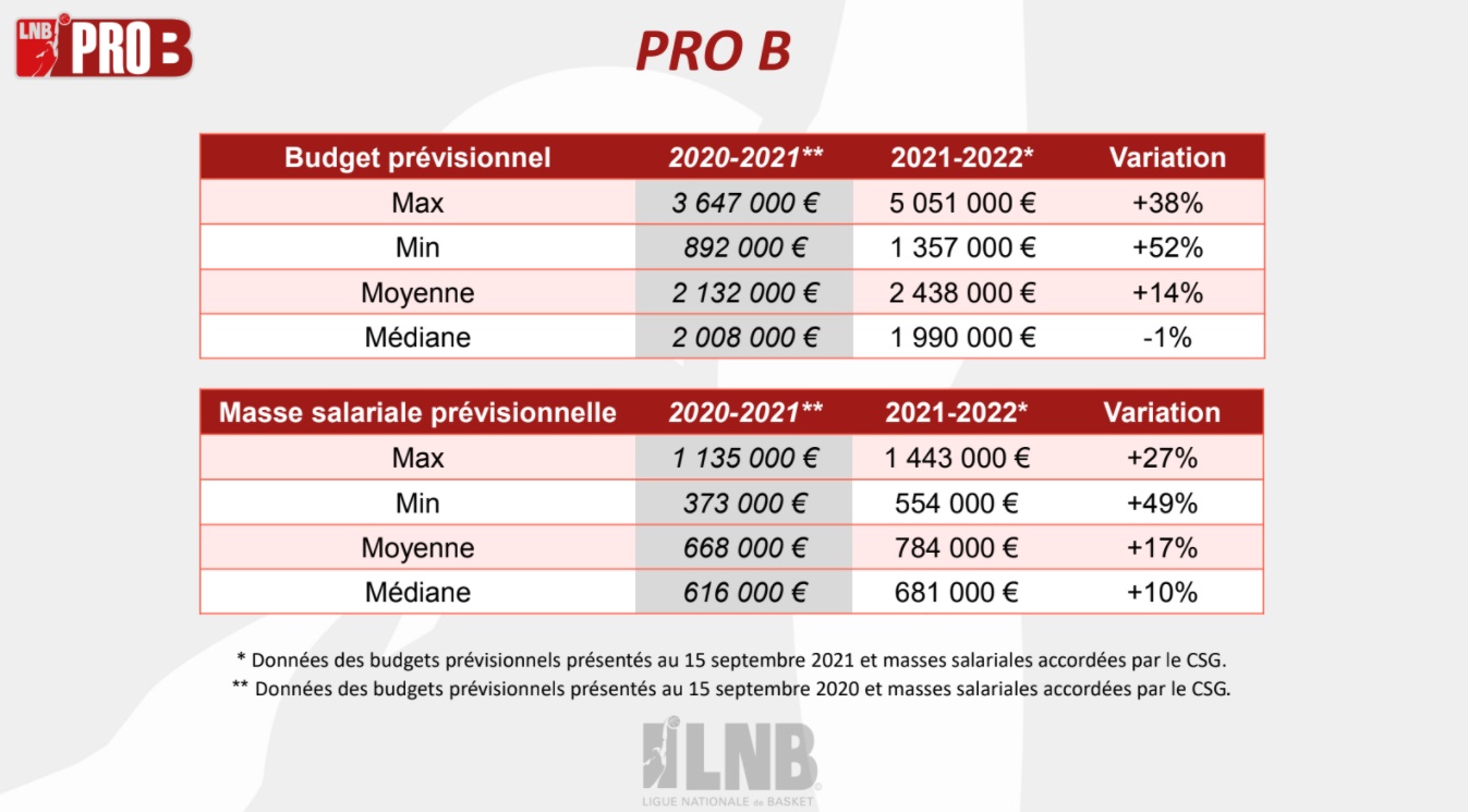 En Pro B, les deux clubs relégués à l’issue de la saison 2020-2021, Elan Chalon et Boulazac, présentent les deux budgets les plus importants avec respectivement 5,1M€ et 3,6M€.