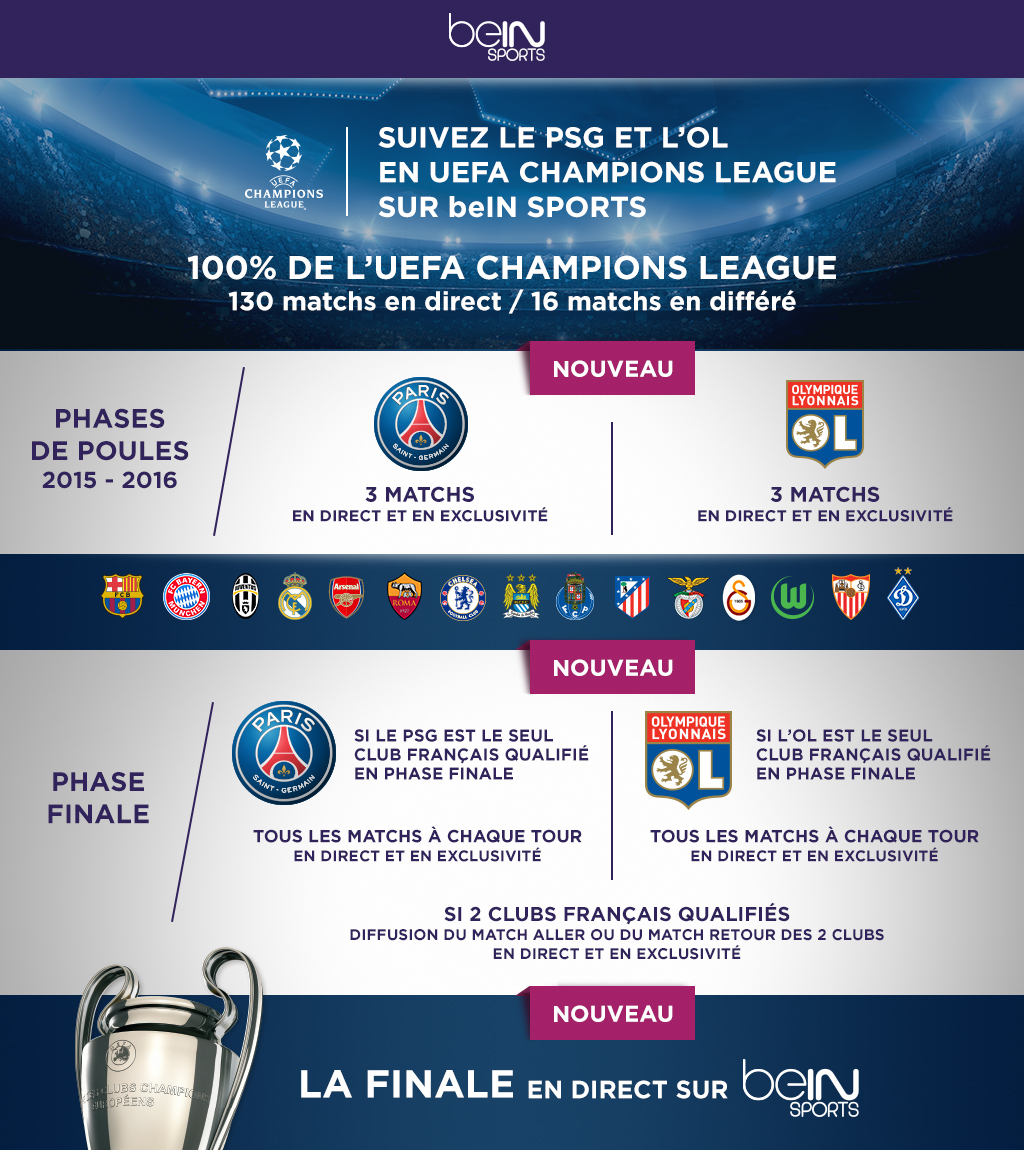 – Nouveau : la garantie de suivre au minimum 3 matchs en direct et en exclusivité du Paris Saint-Germain, 3 matchs en direct et en exclusivité de l’Olympique Lyonnais