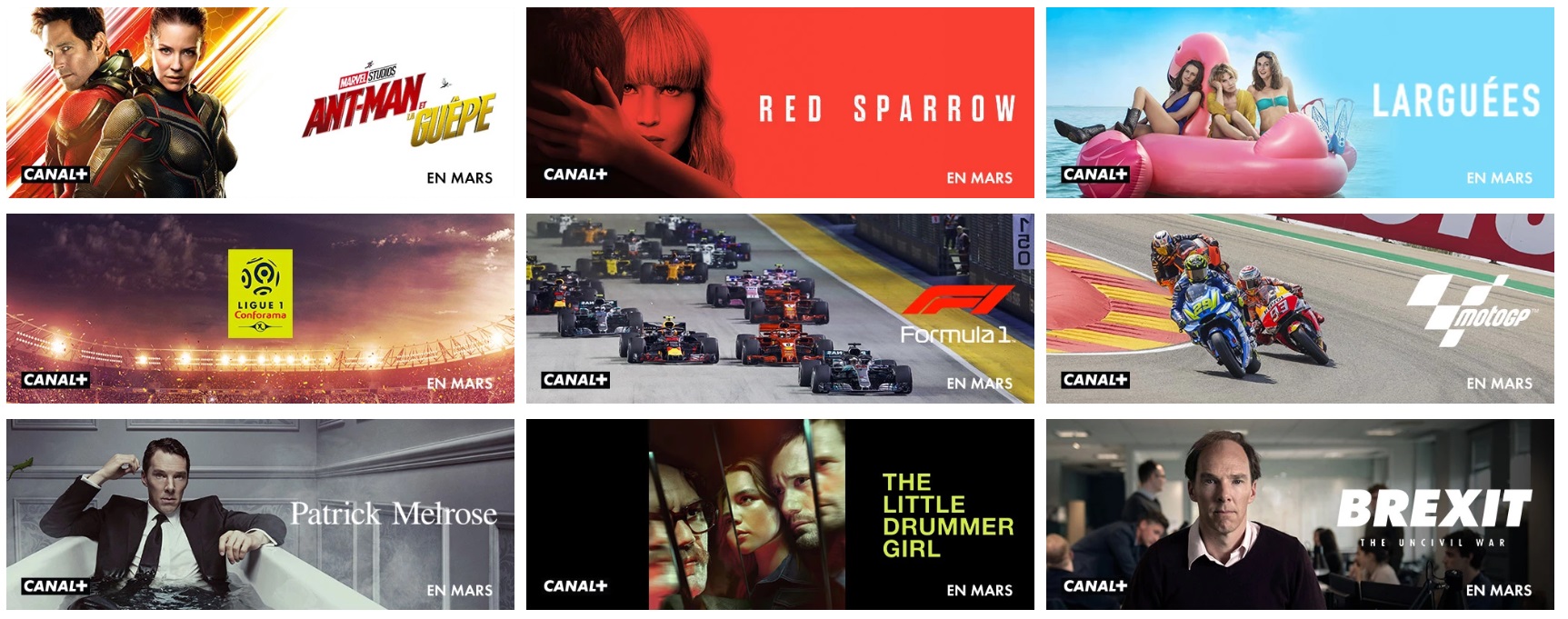 Avec les chaînes exclusives CANAL+, CANAL+Sport, beIN SPORTS, Eurosport, Foot+, Rugby+, Golf+, Infosport+, AppleTV.
