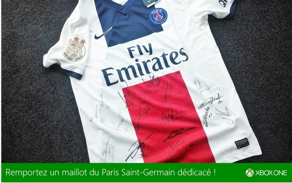 A l’occasion du 1/4 finale retour de Ligue des Champions entre Chelsea et le Paris Saint-Germain, Xbox One, console officielle du club parisien, vous offre un maillot officiel dédicacé par les joueurs via le compte Twitter @XboxFR. Pour participer et tenter votre chance, il vous suffit de suivre le compte @XboxFR et de retweeter (RT) le message ci-dessous. Bonne chance ! ;-)