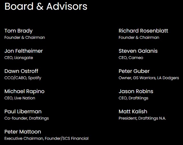 A ses côtés, Tom Brady est bien évidemment entouré d’une « grosse équipe » avec un board constitué de dirigeants de sociétés comme Spotify, Cameo ou encore DraftKings.