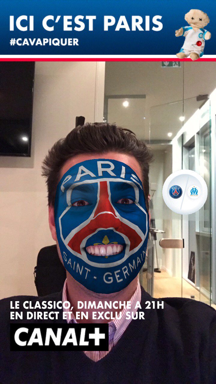 Disponible uniquement sur mobile, les internautes vont pouvoir se prendre en photo et choisir le filtre PSG ou OM. En ouvrant la bouche, un bandeau d’encouragement apparaît (« Ici c’est Paris » et « Droit au but »). Les fans pourront alors enregistrer leur photo et la partager sur les réseaux sociaux ou l’envoyer en privé, au choix.